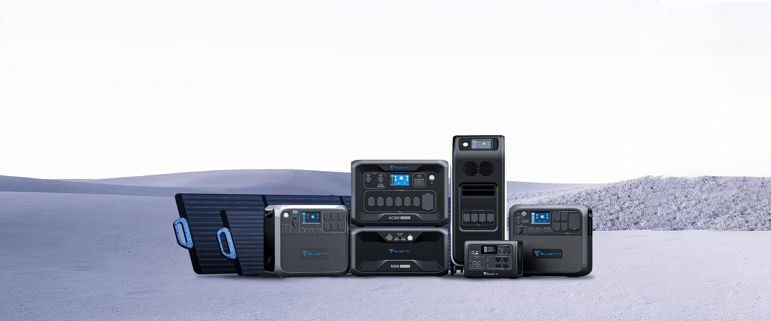 6pcs BLUETTI 200W solar panels can quickly charge BLUETTI AC300+2*B300 panels within 6.5-7 hours by connecting them in parallel.