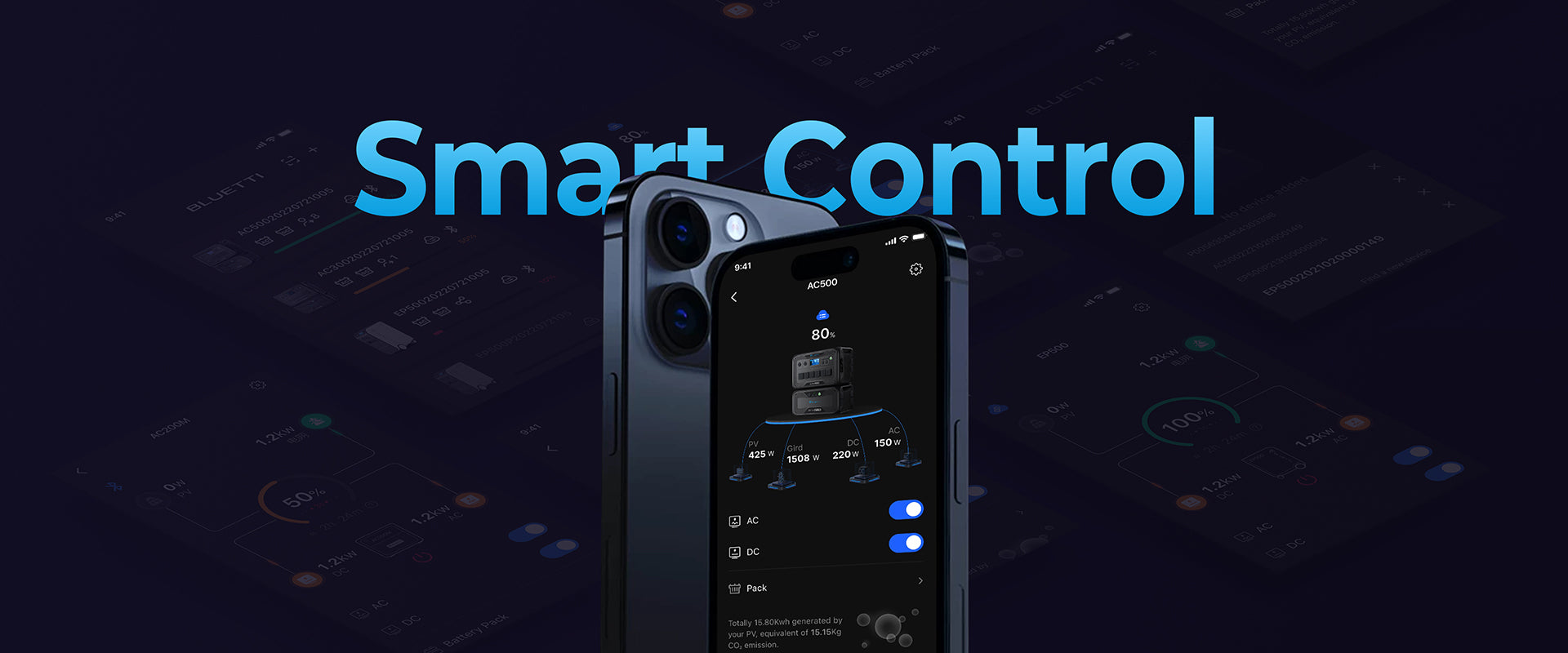 يتيح لك تطبيق BLUETTI البديهي وشاشة اللمس التحكم في كل شيء، بما في ذلك إدخال/إخراج الطاقة، واستهلاك الطاقة في الوقت الفعلي، وملفات تعريف الشحن، وتحديث البرامج الثابتة عبر الهواء، والمزيد.