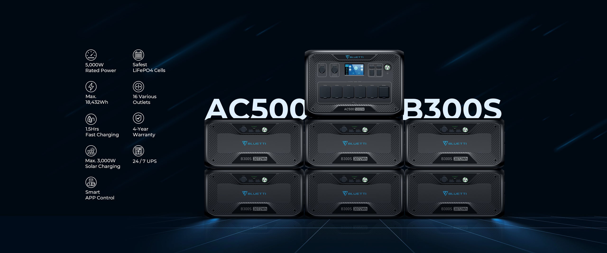 BLUETTI AC500+B300S Home Power Bank | 5,000 Wh 3,072 Wh
