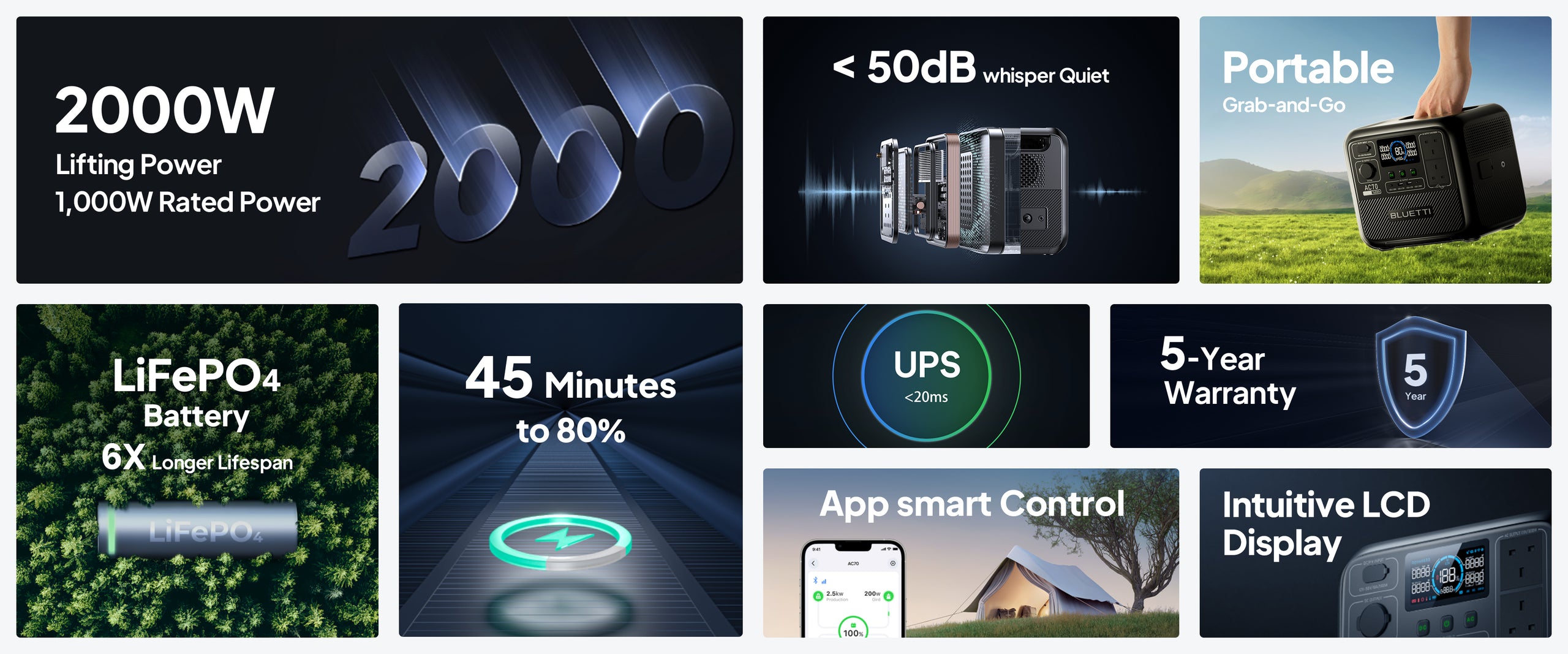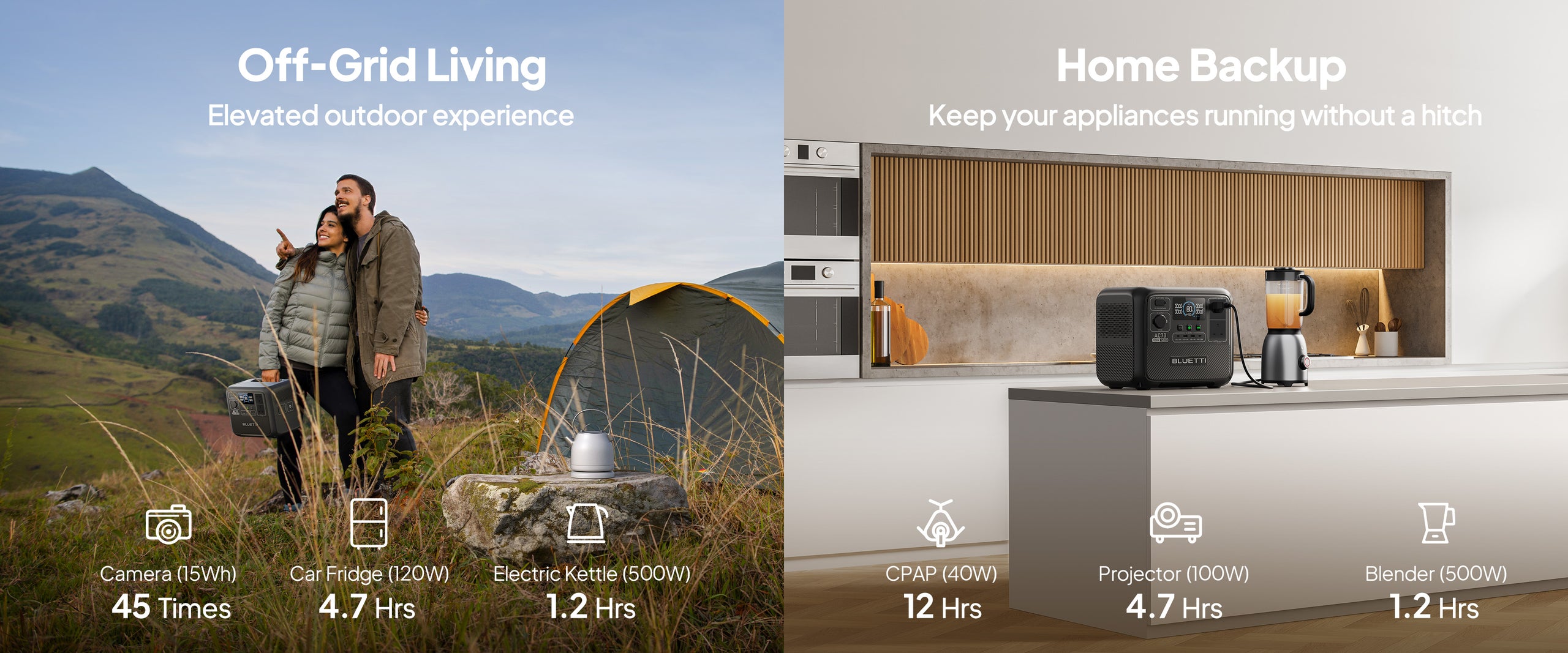 يتميز جهاز BLUETTI AC70 بطاقة مستمرة تبلغ 1000 واط، ومنافذ متعددة لتوصيل أجهزة متعددة في آنٍ واحد.