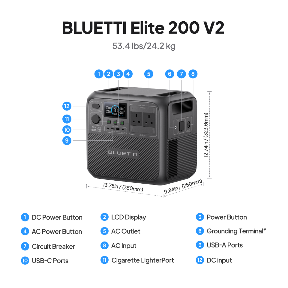 BLUETTI Elite 200 V2 Portable Power Station | 2,073.6Wh 2,600W